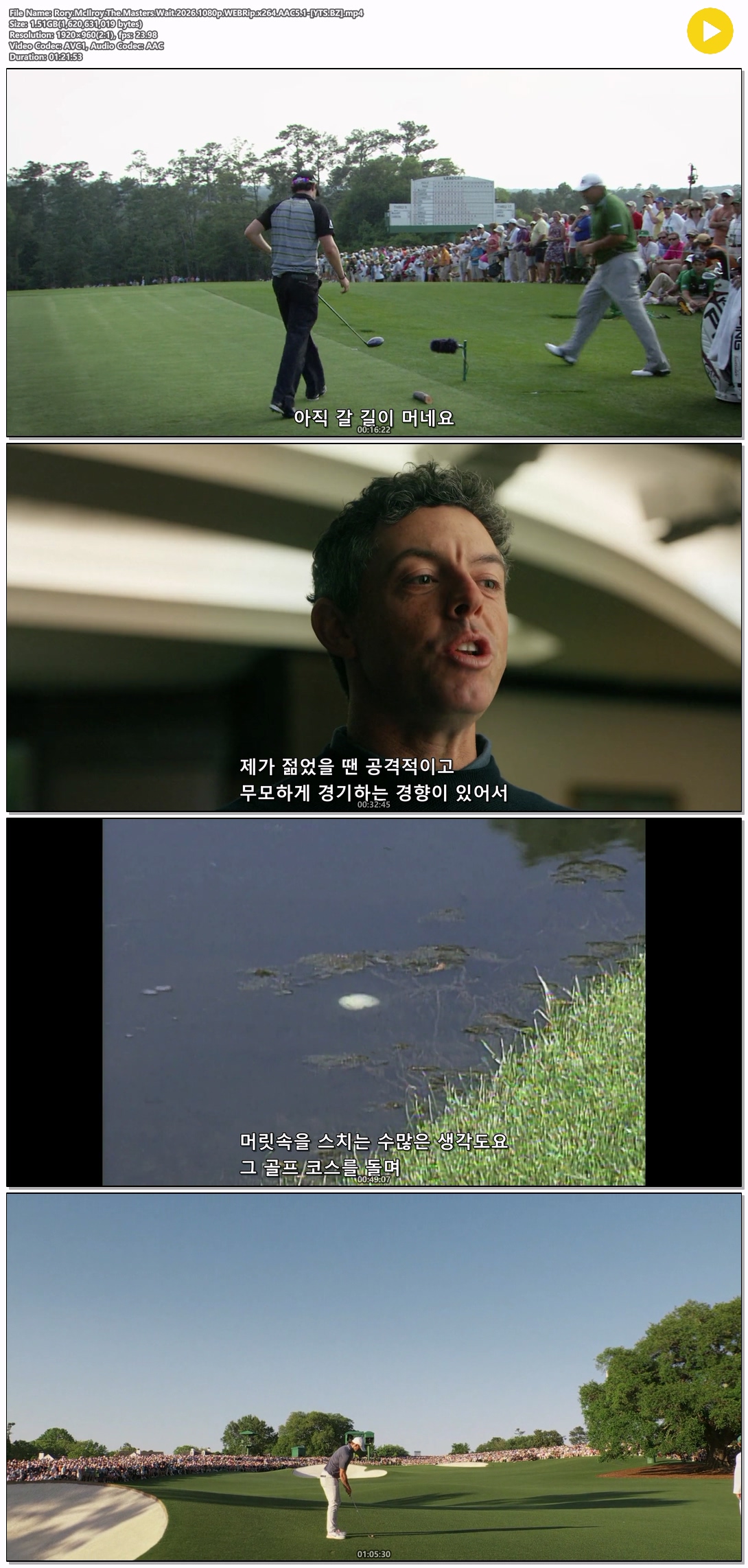 [다큐] 로리 매킬로이 - 마스터스를 향한 기다림.2026.1080p.한글자막/