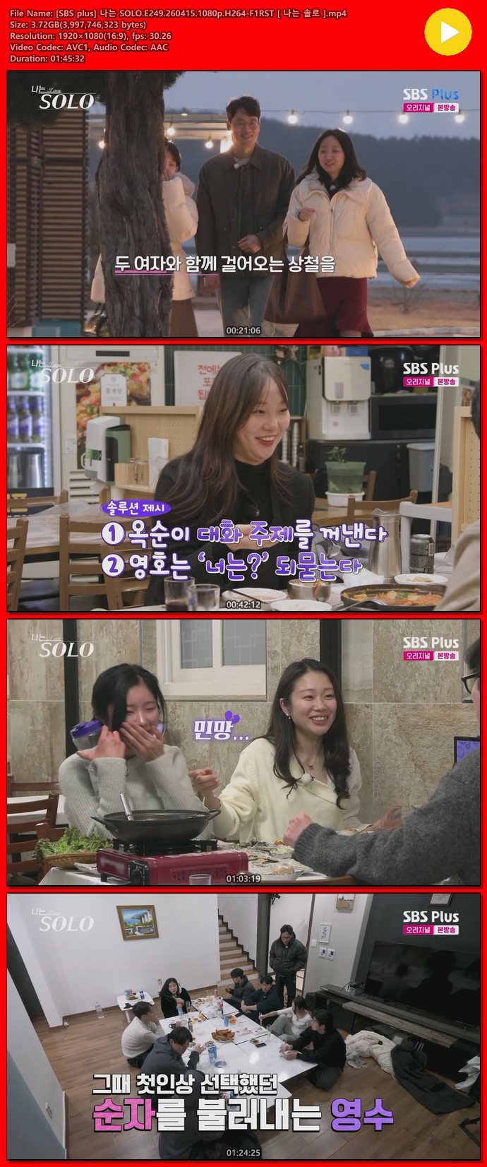 [SBS plus] 나는 SOLO.E249.260415.1080p.H264-F1RST [ 나는 솔로 ]