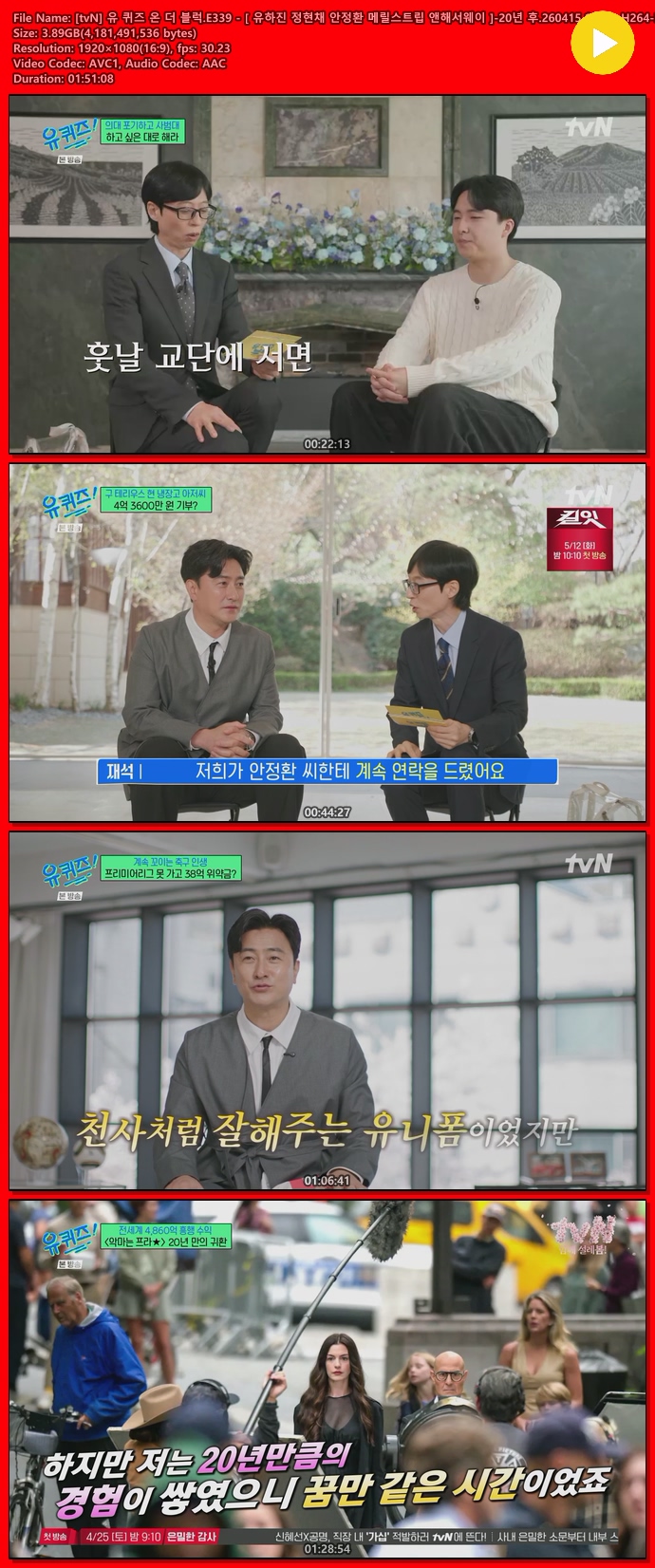[tvN] 유 퀴즈 온 더 블럭.E339 - [ 유하진 정현채 안정환 메릴스트립 앤해서웨이 ]-20년 후.260415.1080p.H264-F1RST